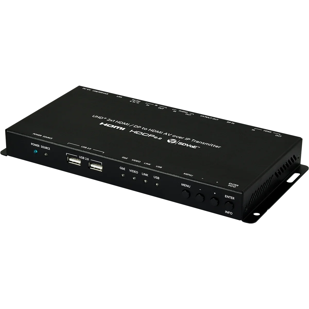 UHD+ 2x1 HDMI/DP to HDMI Bi-directional AV over IP Transmitter W/HID USB |