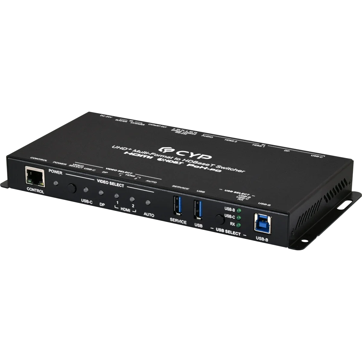 • HDBaseT output supports resolutions up to 4K@60Hz (4:2:0, 8-bit) with automatic down conversion to 1080p for any sources that exceed HDBaseT’s bandwidth limitations, such as 4K@60Hz (4:4:4, 8-bit) or 4K@any (10/12-bit) sources • Supported HDBaseT feature set: HD Video & Audio, PoH (PD), and Control Extension (Bi-directional IR/RS-232/USB) • Analog audio may be embedded with all sources • USB Type-C input can provide power (up to 60W) to any connected device (only available when the unit is powered locally) • Supports manual input selection or automatic input selection with hot plug detection • Basic signal event automation (via RS-232 or CEC) • Supports optionally being powered via PoH from a compatible HDBaseT receiver • Controllable via front panel button, WebGUI, Telnet, or RS-232
