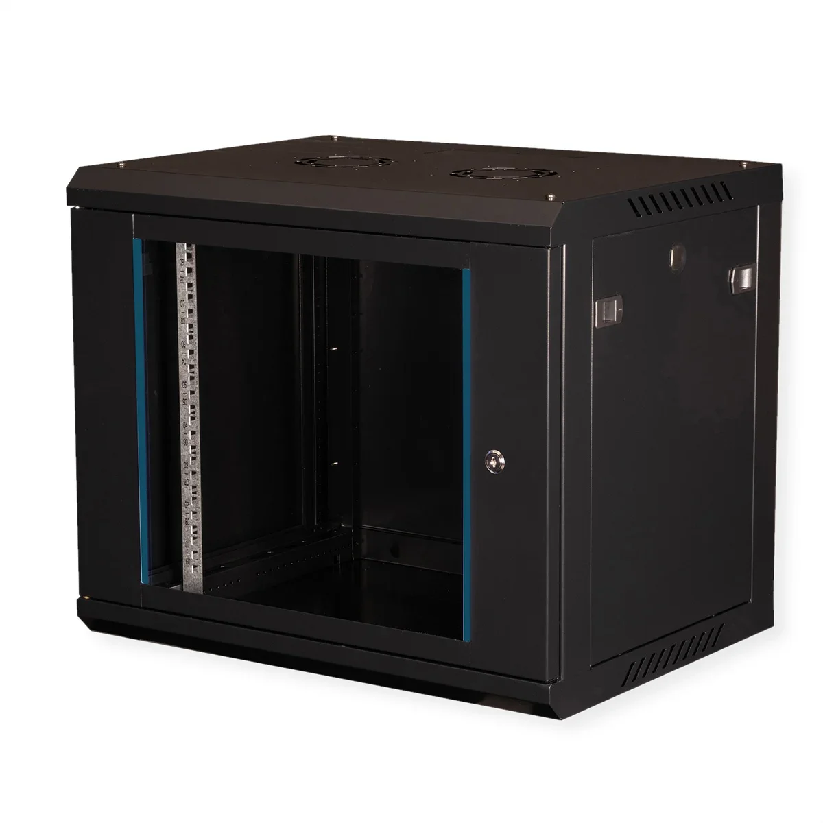 Die VALUE Wandgehäuse sind für flexible Netzwerkverkabelungen konzipiert und verfügen über ausgestanzte Kabeleinlässe im Boden und Dach sowie eine Lüftervorbereitung. Die robuste Stahlkonstruktion ist pulverbeschichtet und mit abnehmbaren Seitenwänden samt Schnellverschluss ausgestattet. Für mehr Sicherheit lassen sich optionale Schlösser integrieren. Der Schrank wird als Bausatz geliefert und lässt sich schnell und einfach montieren.