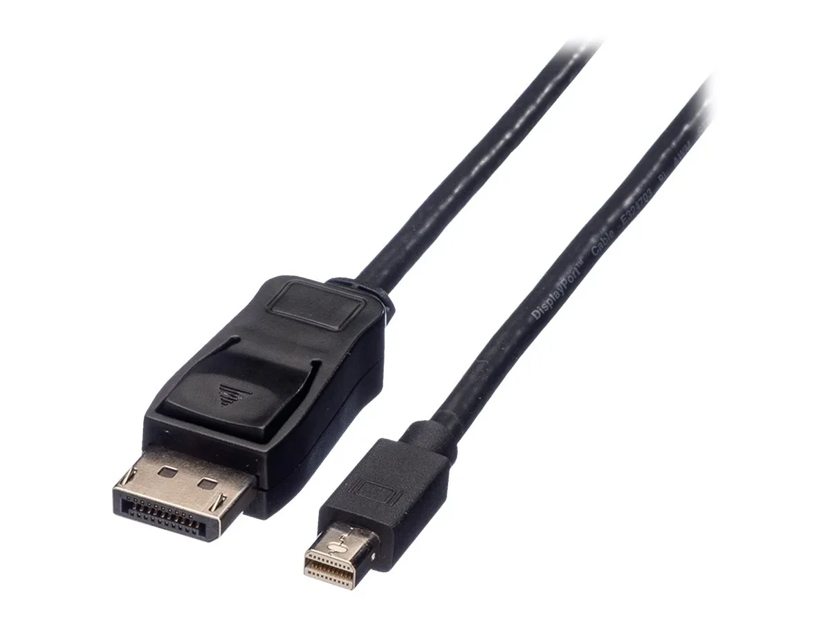 VALUE DisplayPort Kabel mit DP- und Mini DP-Anschluss für das Verbinden eines Ultrabooks, Notebooks/Laptops oder PCs mit einem Monitor, TV, Beamer oder Projektor - für Bildschirmübertragungen in exzellenter Qualität mit einer Auflösung von bis zu 2560x1600 @60Hz! DisplayPort ist ein universeller Verbindungsstandard für die Übertragung von Bild- und Tonsignalen. Anwendungsbereiche sind im Wesentlichen der Anschluss von Monitoren und Fernsehgeräten an Computer, BluRay Player und ähnliche Geräte. Der Anschluss benötigt weniger Platz und ist daher besser geeignet für tragbare Anzeigegeräte (Ultrabooks, Notebooks/Laptops) oder für 2 Anschlüsse an einer Grafikkarte (auf einem Slotblech). Das praktische Steckerdesign verhindert ein rausrutschen des Kabels aus der DisplayPort Buchse Anschlüsse: Mini DisplayPort Stecker - Displayport Stecker; Mini DisplayPort wird häufig an Monitoren oder Grafikkarten eingesetzt, da er trotz der gleichen Technologie weniger Platz als der herkömmliche DisplayPort Stecker benötigt.