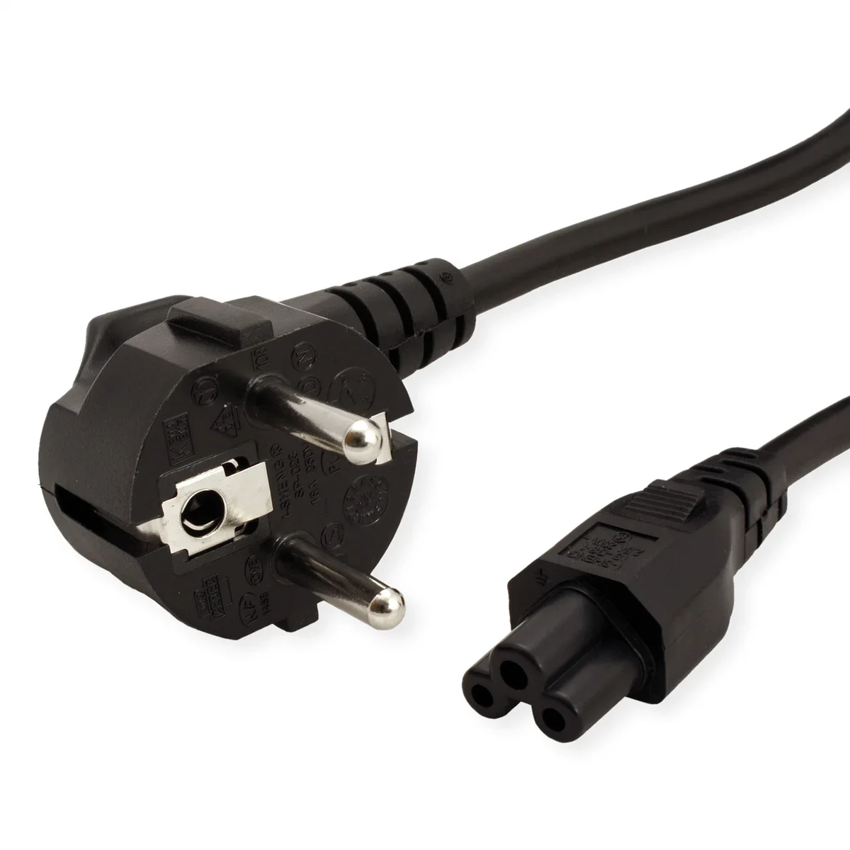 - Anschlüsse: Schutzkontaktstecker 90° gewinkelt, 3polige Notebookanschluss-Buchse gerade