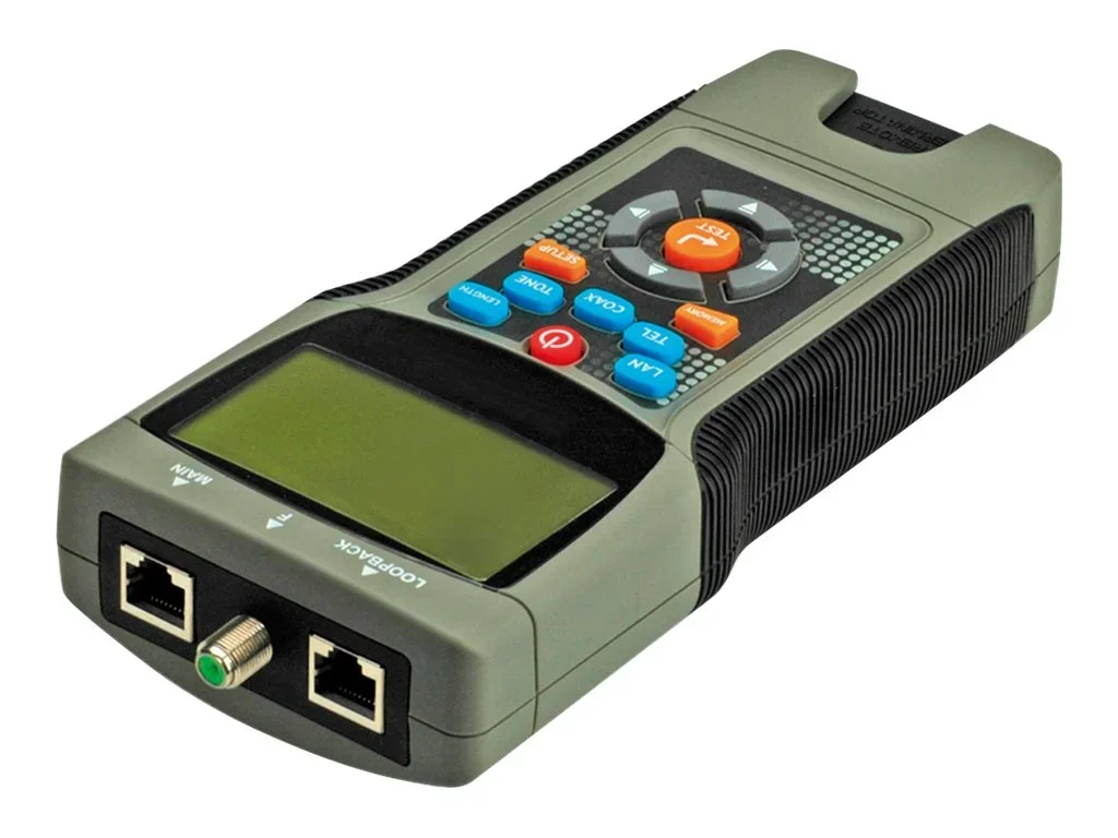 Handlicher LCD-Multifunktions Lan-Kabeltester Check bei COAX, CAT5 und CAT6 auf Verdrahtungsfehler und Störung Überprüfung von Belegegungssequenzen TDR (Time domain reflect meter) für Längen und Distanzmessungen Auffinden von offenen Leitungen, Kurzschlüssen, Störungen, Fehlbelegungen, geteilte Leitungspaare Bestimmung von Durchgang und Belegungsmuster BatteriefehleranzeigeAchtung: Kabeltester nicht an Geräte im laufenden Betrieb anschließen.