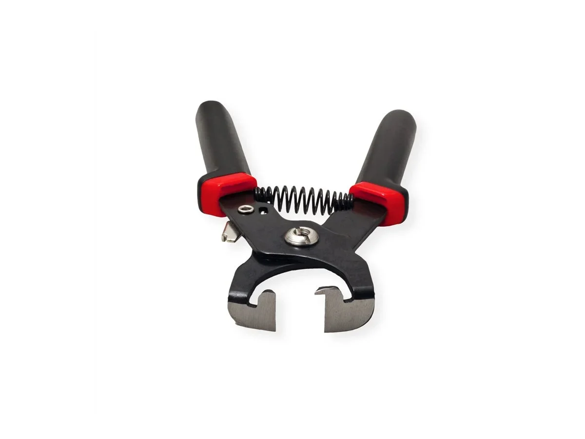 Spezial-Schneidwerkzeug zum Durchschneiden von Kabelbindern Speziell geformtes Werkzeug zum sicheren Durchschneiden von Kabelbindern ohne Gefahr der Beschädigung von Kabeln Zum Einsatz bei z.B. Nach-Verlegung in oder zum Entfernen von Kabeln aus Kabelbündeln Ergonomisch geformte Griffe Mit Sicherungssperre bei Nicht-Verwendung.