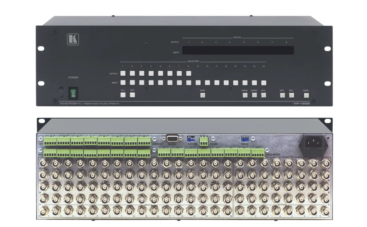 VP-1608 – 16x8 Matrixschalter für RGBHV mit symmetrischem Stereoton