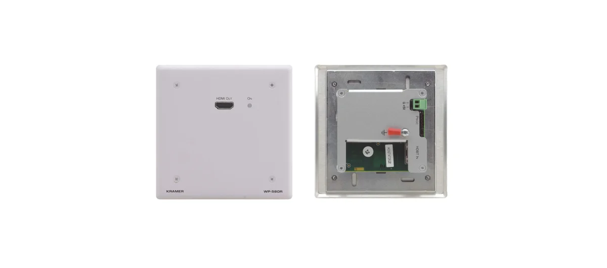 WP−580R ist ein Hochleistungs−Empfänger für 4K @60 Hz (4:2:0) HDMI−Signale mit RS−232 und IR per HDBaseT über Twisted Pair als Wandanschlussfeld. Er hat einen Eingang für das HDBaseT Twisted Pair Signal vom Übertrager WP−580T und wandelt dies zurück in HDMI−Signale mit RS−232 und IR. Auch als WP−580R(D) erhältlich für DECORA®−Rahmen.